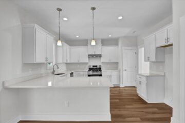 The kitchen, situated adjacent to the dining area, features modern appliances and a generous pantry, ensuring that all cooking needs are effortlessly met. A charming breakfast nook extends from the kitchen, providing a sunlit spot for morning coffee and casual dining.
